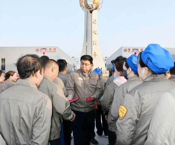 當(dāng)日清晨,公司黨委書記、董事長、中科公司總經(jīng)理包廣利帶領(lǐng)全體領(lǐng)導(dǎo)班子成員及各部門負(fù)責(zé)人,早早等候在廠區(qū)入口,以最誠摯、最熱烈的方式迎接1000余名職工返崗復(fù)工。伴隨著喜慶昂揚(yáng)的新年序曲,鏗鏘禮炮響徹廠區(qū),璀璨煙花騰空綻放,全體職工精神飽滿、意氣風(fēng)發(fā),邁著堅(jiān)定的步伐有序步入廠區(qū)?,F(xiàn)場處處涌動(dòng)著歸崗團(tuán)圓的溫情、昂揚(yáng)向上的斗志和再啟新程的豪情。