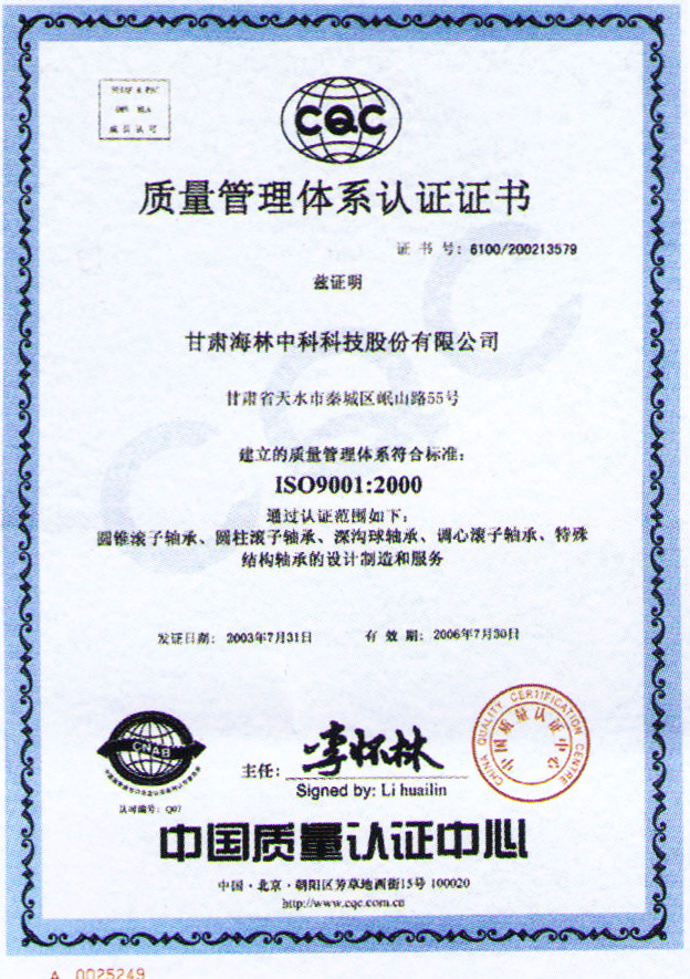 2003年通過(guò)中國(guó)質(zhì)量認(rèn)證中心ISO9001:2000標(biāo)準(zhǔn)換版認(rèn)證